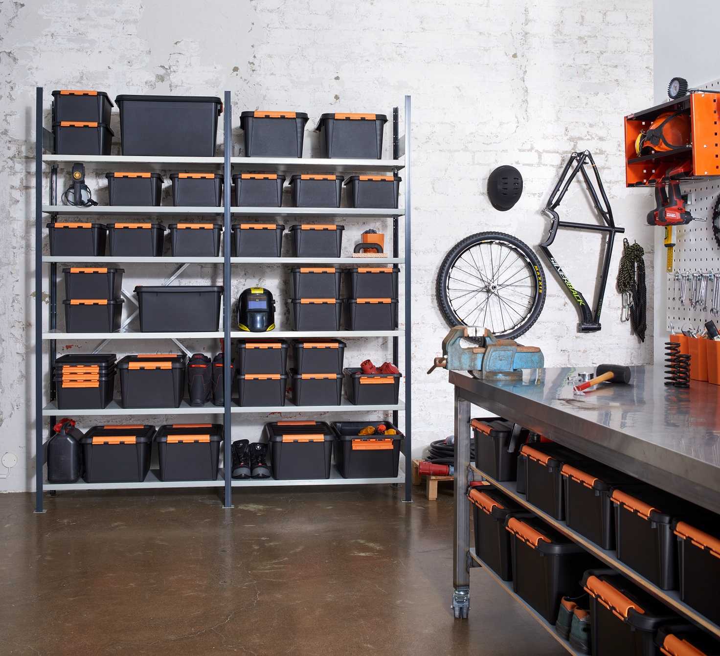 Organize things into transparent boxes or use a marking system. Place tools and other heavy or sharp objects in durable boxes like the SmartStore Pro. These heavy-duty boxes endure impacts and large temperature changes. The boxes stack steadily on top of each other and are also easy to carry.