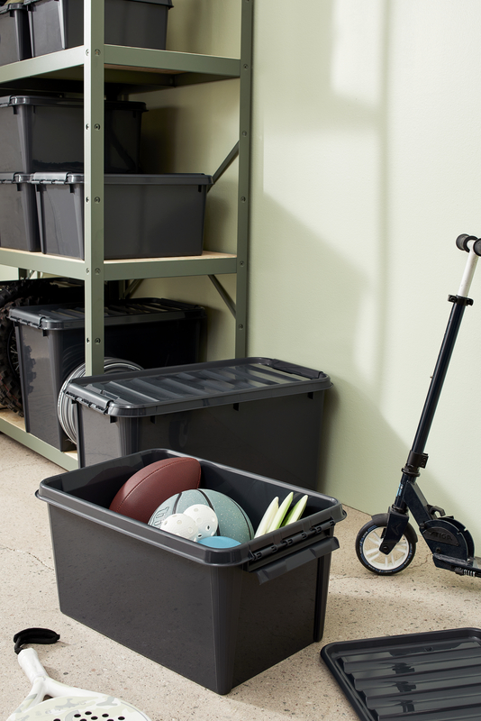 1. Choose sustainable storage solutions: For these areas, SmartStore™ Recycled boxes are ideal. Made from recycled plastic, they are sturdy and durable, perfect for storing tools, seasonal decorations, or sports equipment.