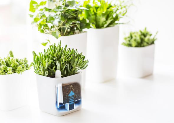 Spacious and practical pot for long-term irrigation with water and soil reservoirs. Clear dipstick shows when it is time to refill water - no risk of overwatering. The dipstick works in the same way as an oil dipstick, you lift it up to see how high the water reaches