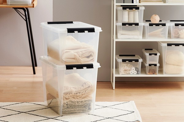 The SmartStore™ Classic range includes a wide assortment of premium quality storage boxes for different kinds of needs. SmartStore™ Classic is our most popular range and has been around since 1995, providing safe and durable storage. This spacious 46 litre box is perfect for storing bigger items such as outdoor gear, seasonal clothing and extra blankets. The transparent material makes it easy to quickly identify the contents. Sturdy clips made of recycled plastic keep the lid firmly in place. The boxes nest without lid, and stack with lid. The SmartStore™ Classic 46 L box is stackable with Classic 66 L. Made in Sweden, from durable food-grade plastic. 10 years guarantee.