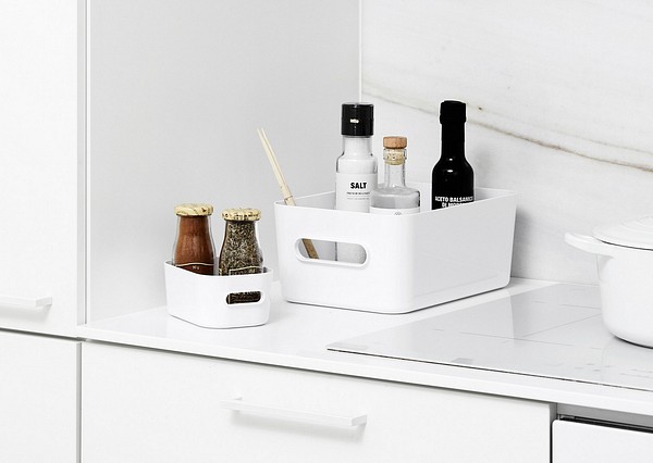 SmartStore™ Compact is a modern and multi-purpose storage solution for the home. The timeless and modular range is designed to work in cabinets and drawers, as well as on shelves and counter tops. The SmartStore™ Compact M is suitable for storing everything from dry food items, jars, oil and vinegar in the kitchen, to toiletries in the bathroom. All Compact-products are made from high-quality material that is easy to clean by hand-wash or in the dishwasher. The containers nest without lid, and stack with lid. The container is easy to lift and move thanks the handles. Lids are sold separately. Made in Finland, from food grade SAN plastic with 20% renewable content (allocated via ISCC mass balance approach). 10 years guarantee.